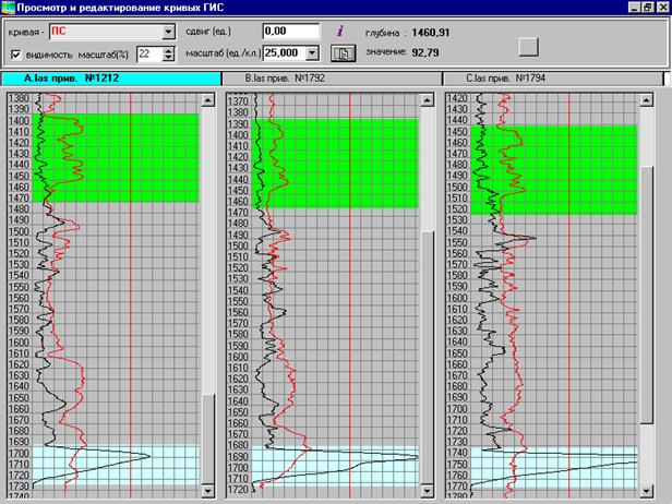 модулем реперных участков ГИС на всех трёх скважинах, оценка расхождения между