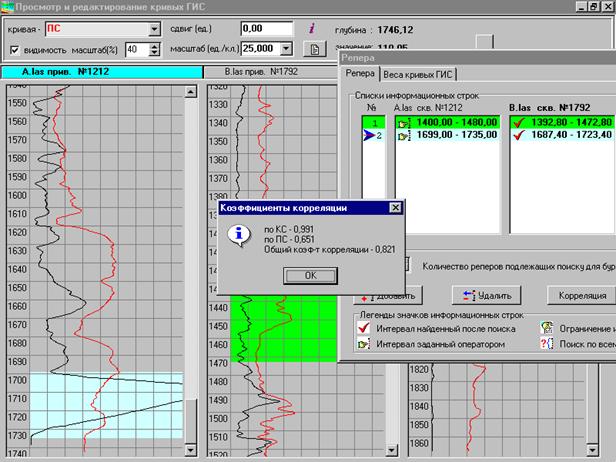 5.6. Окно отображения кривых ГИС с отображением найденных реперов.