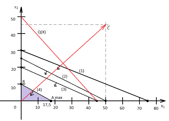 поиске точки максимума ЦФ будем двигать целевую прямую по направлению вектора
