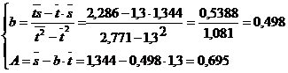 уравнения линейной регрессии s = A + b·t. Для расчетов заполним таблицу.