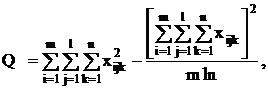 влияния на рассматриваемую переменную факторов А, B и их взаимодействия AB