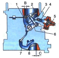 Воздушная заслонка 2 должна приоткрываться (пусковой зазор В)