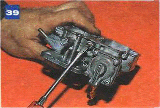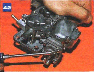 Шлицевой отверткой отворачиваем клапан ускорительного насоса.
