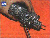 Снимаем рычаги, шайбы и втулку с оси дроссельной заслонки.