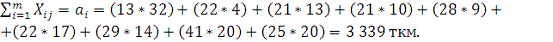диагонального (северо-западного угла) метода, сумма затрат составила 3339 ткм.