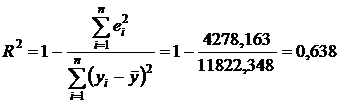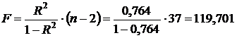 (119,701 > 4,105), то полученная показательная модель регрессии адекватна