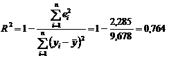 говорит о том, что она объясняет 76,4 % разброса результативного признака Y
