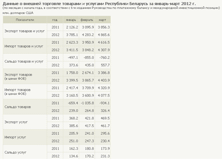 товаров в Республике Беларусь период с января 2009 г. по март 2012 г. и ее