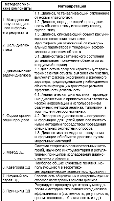 Таблица 2. Компоненты методологии экономической диагностики