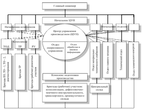 Управление технической службой АТП в этом случае осуществляет главный инженер.