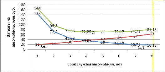 формулу (2.2) получаем оптимальный срок службы автомобиля, соответствующий