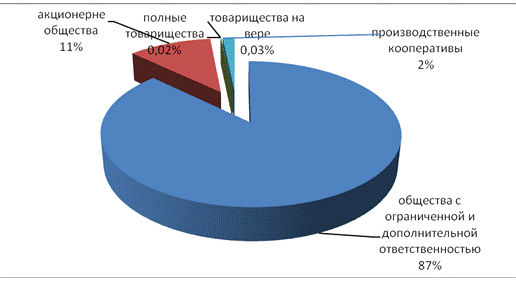 482(0,02%), товарищества на вере - 697(0,03%), производственные кооперативы -