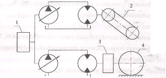 рабочего органа с грунтом, движителя, гидрообъемной трансмиссии и двигателя