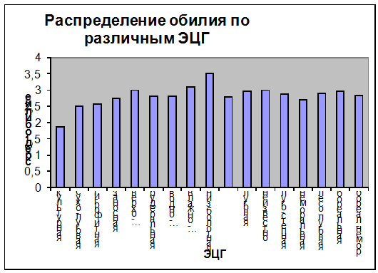 экологической амплитуды, встречаемости в данном ландшафте и характерному уровню