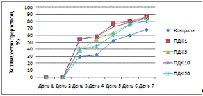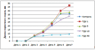 исследованных концентрациях, влияние на развитие корневого проростка изменяется