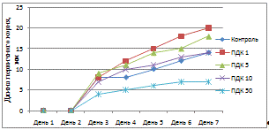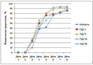 скоростью развития и формирования проростка и концентрацией токсиканта в