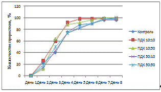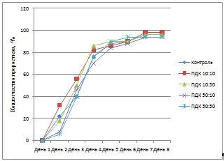 выраженное стимулирующее воздействие на скорость прорастания семян при всех