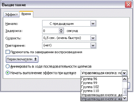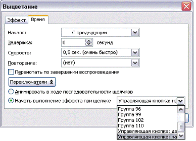 эффекта при щелчке»… И в раскрывающемся списке выбираем Управляющая кнопка: