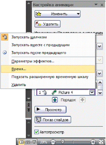 надпись: щелчок ПКМ «Изменить текстовую строку». В списке анимаций конструктора