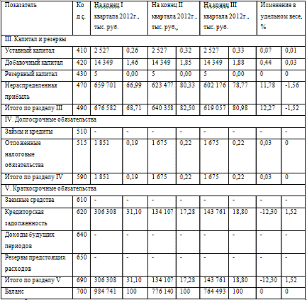 конец III квартала 2012 года финансовое состояние предприятия ОАО