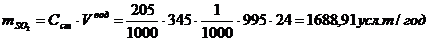каждого из загрязняющих веществ, входящих в состав дымовых газов за 1 год:
