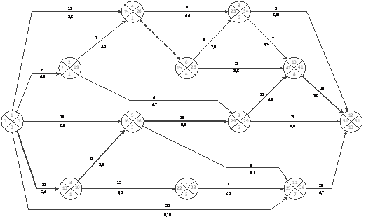 продолжительности. При этом на общем сетевом графике необходимо показать уход