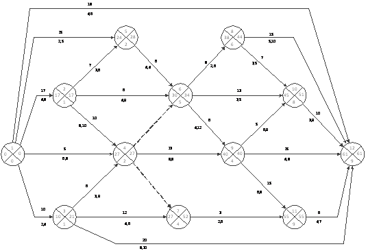 . провести общую нумерацию событий и рассчитать общий сетевой