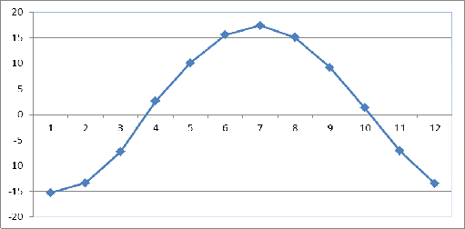 Температура наружного воздуха в 0С приводится в таблице 1.2. На рис 1.2