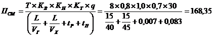 - коэффициент естественной осадки снежного вала, К = 1,5-1,8