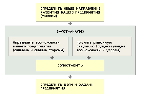 сильные и слабые стороны предприятия, а также рыночные возможности и угрозы.