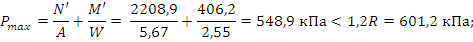 внутреннего трения и удельное сцепление грунта определяются согласно табл.3