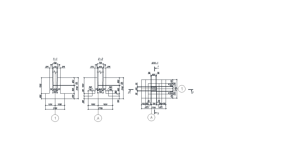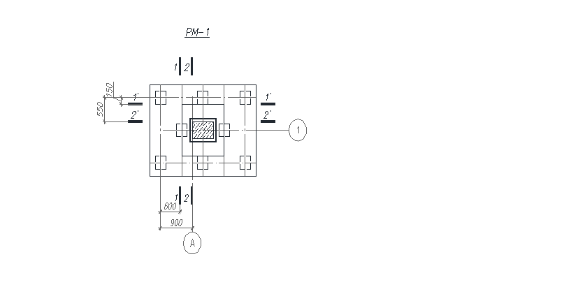 каждой стороны подколонника, l = 1430 мм; поперечную с шагом 600 - 2ø6 А-I с As = 0,57 см2, l = 1130 мм,