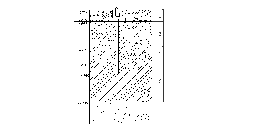 сваи (m2) должно быть не менее 1,5 при забивке свай в грунты средней