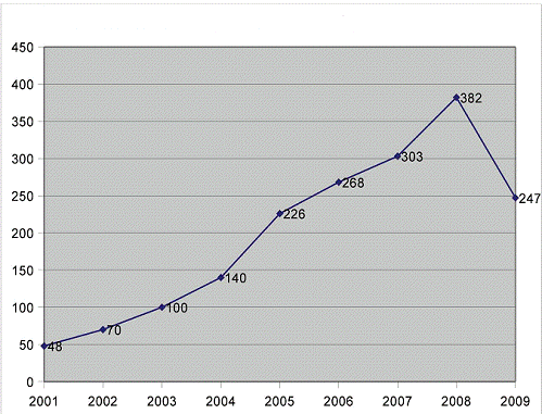 Рис.Д.1- Графік змін кількості франчайзерів в Україні за