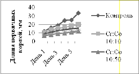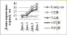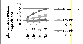 совместном влиянии солей никеля и свинца на длину листового проростка и