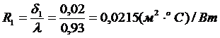 =0,1064*(20+27)/2,0*8,7=0,287 м2×°С/Вт: