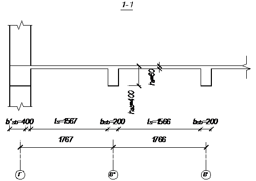 - Второстепенная балка высотой hsb=B/15=450/15=30.0 см, принимаем предварительно hsb=40 см