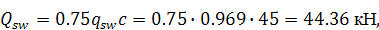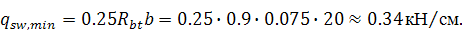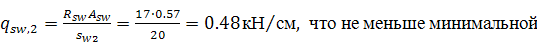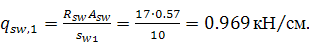 Находим погонное усилие в хомутах для принятых выше параметров поперечного