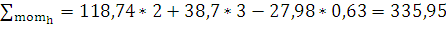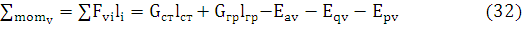 всех вертикальных и горизонтальных сил относительно оси, проходящей через центр