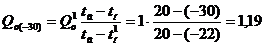 twk (-30) = 0,84 · (60 - 76,96) + 76,96 = 62,71 ºС