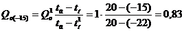 twk (-15) = 0,84 · (60 - 63,47) + 63,47= 60,56 ºС