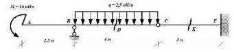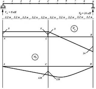 Многопролетная балка имеет максимальные моменты в точках А и В