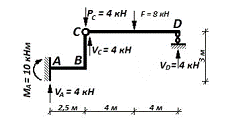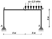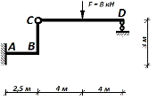 Для балки (см. пункт 2) определить вертикальное перемещение шарнира (любого).