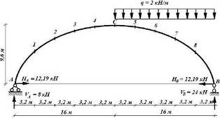 характерным точкам. Ось арки разбить на 8-10 частей.