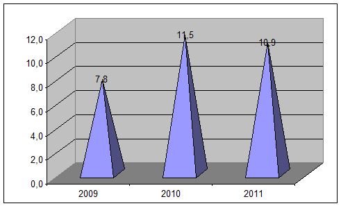 2011 г., судя по состоянию и динамике показателей прибыли и рентабельности,