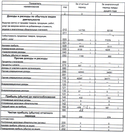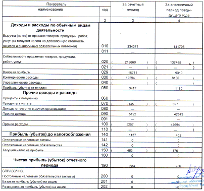 Отчет о прибылях и убытках ритейловской сети «Байрам» за 2010 год,