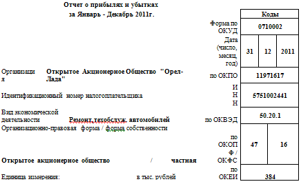 финансово-хозяйственной деятельности ОАО "Орел-Лада"