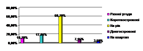 (60,7%), довгострокових - 2 (7,15%), на квартал - 1 (3,60%) (Малюнок 2.2.1).