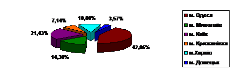 Харків - 3 (10,8%), м. Донецьк - 1 (3,57%) ( Малунок 2.2.2).
