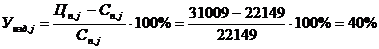 Расчёт уровня рентабельности изделия (Уизд.j) производится по формуле